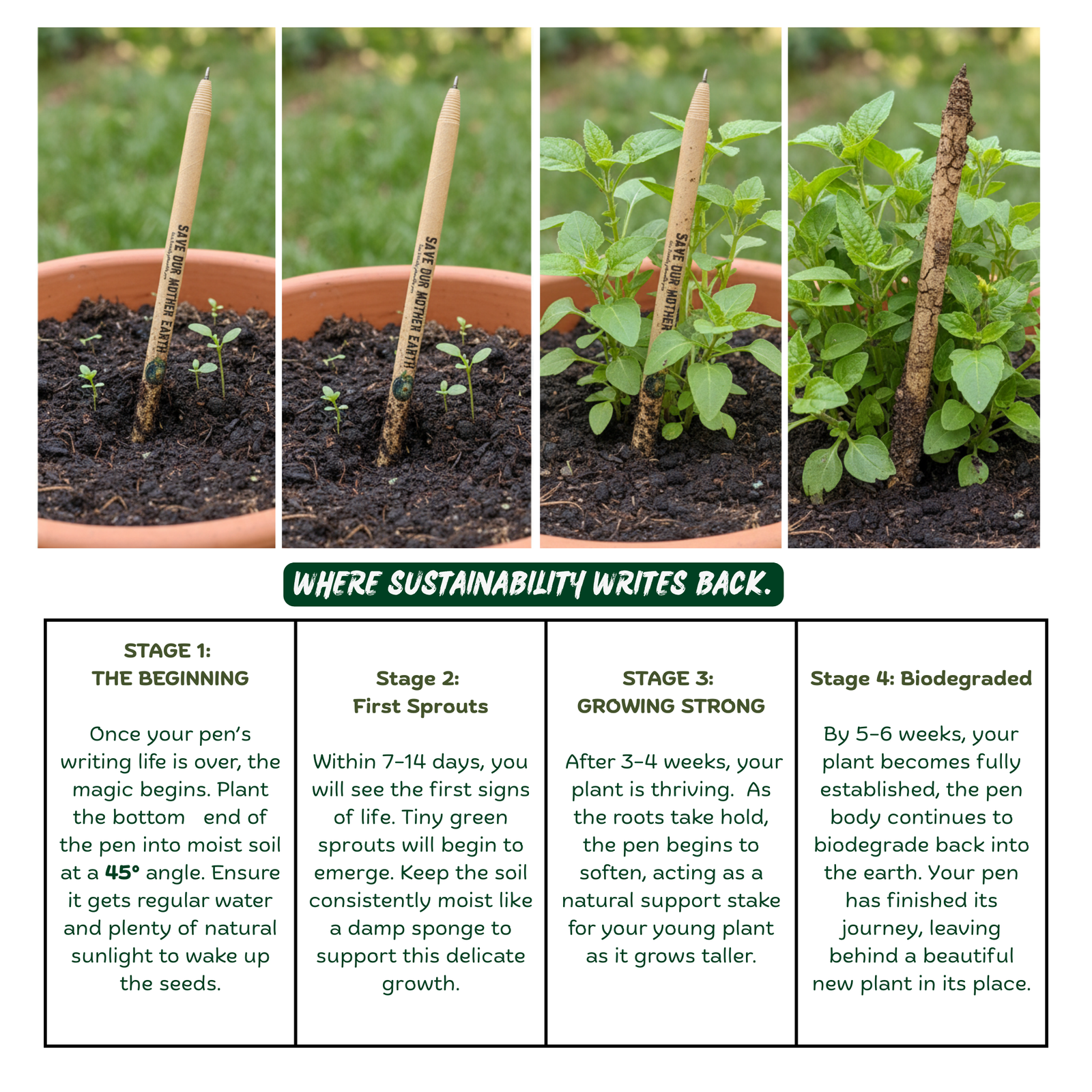 Tip: Residual ink can be harmful to the delicate seeds and soil quality. Make sure your pen has finished its writing life before its growing life begins.